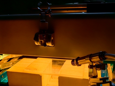 利用線型聚焦加熱器的高光強(qiáng)密度,低能耗,穿透力強(qiáng),控制簡單等特點,通過上方布置加熱器,可快速將碳纖維線加熱到所需溫度。