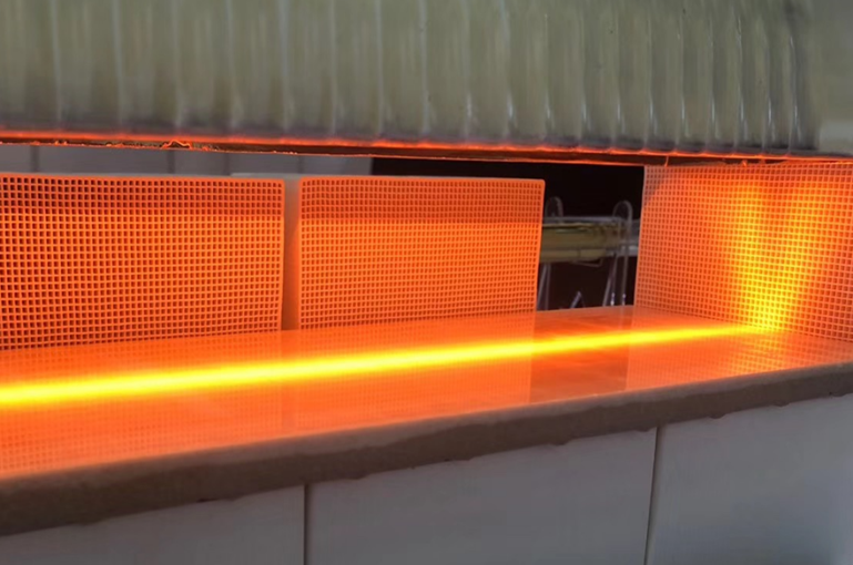 在待折彎的熱塑性預(yù)浸料板上進(jìn)行紅外線快速預(yù)熱軟化,雙面加熱,以達(dá)到折彎所需工藝要求。利用線型聚焦加熱器(加熱器聚集成一條高溫加熱線)的低能耗,高光強(qiáng),穿透力強(qiáng),控制簡單等特點,通過上下布置,快速精準(zhǔn)軟化所需的狹長區(qū)域,尤其帶有厚度的預(yù)浸料折彎加工。